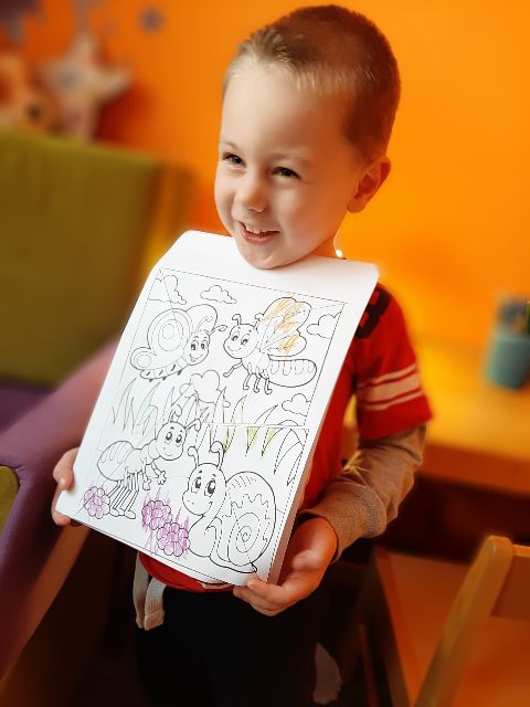 Jaś pokolorował pszczołę