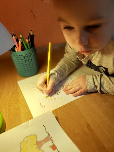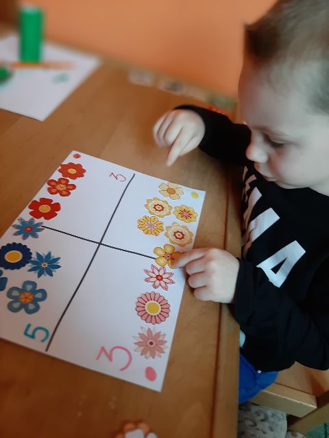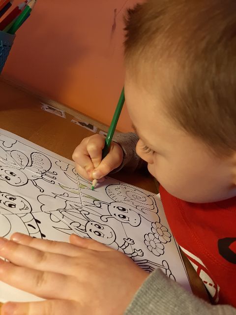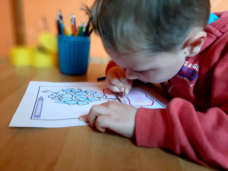 Jaś koloruje kwiaty