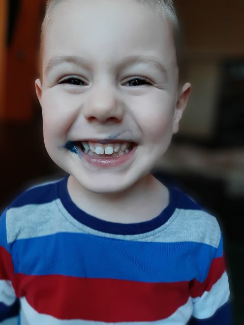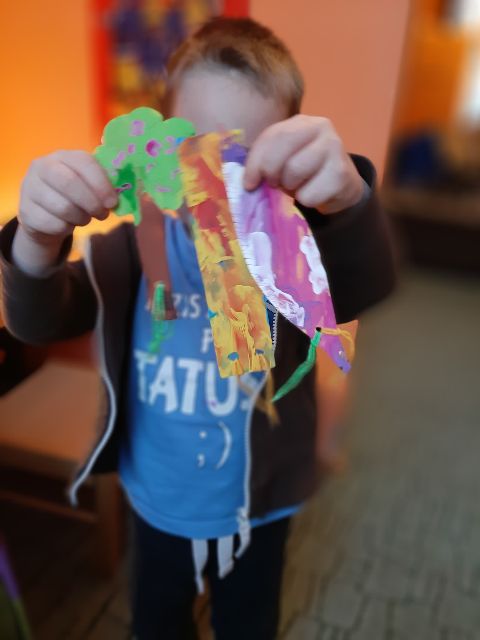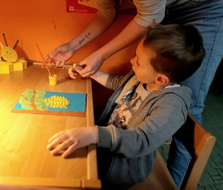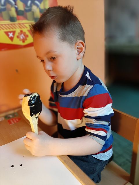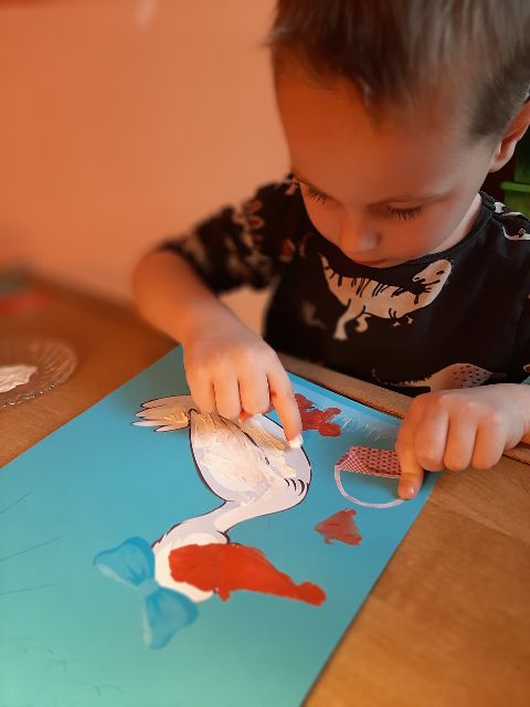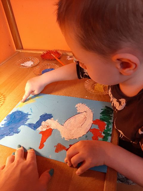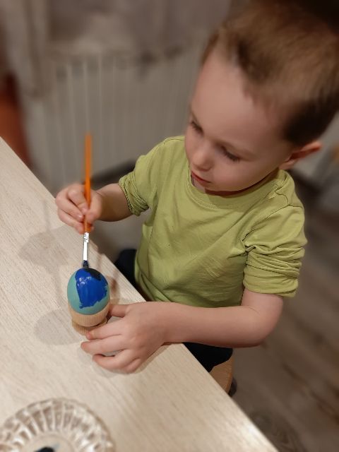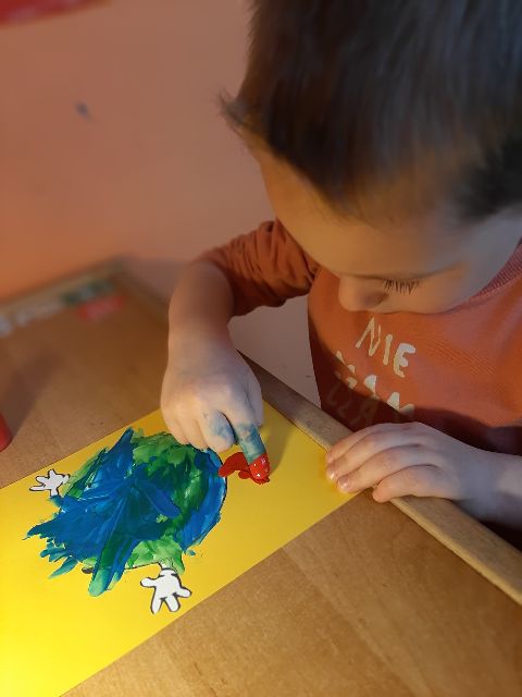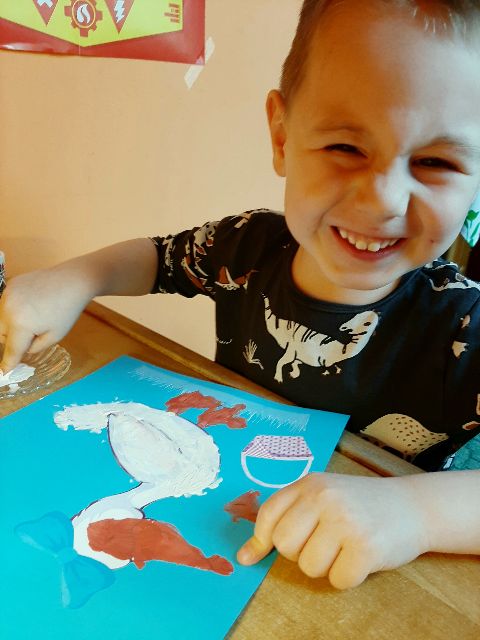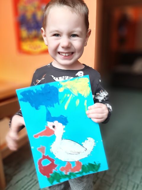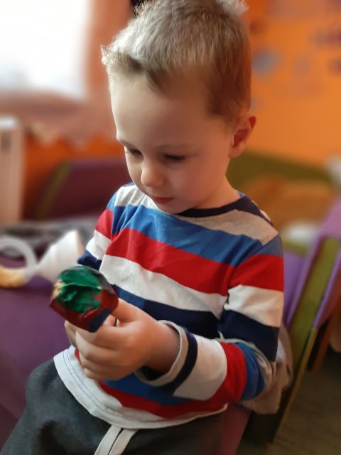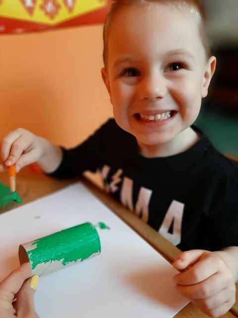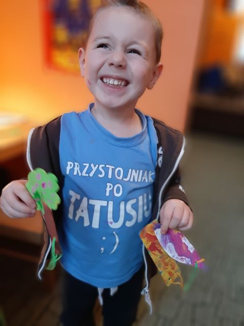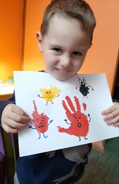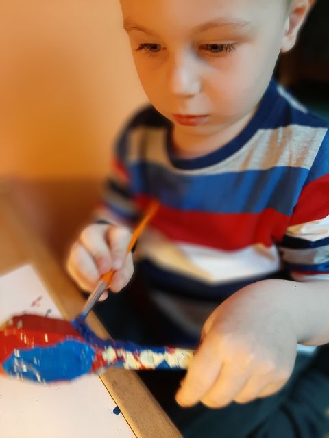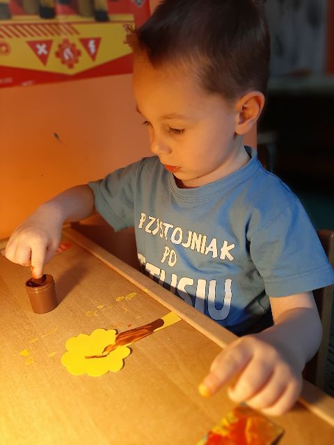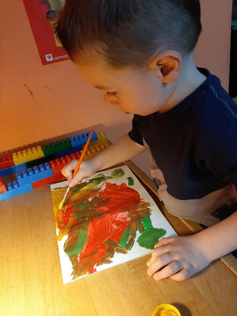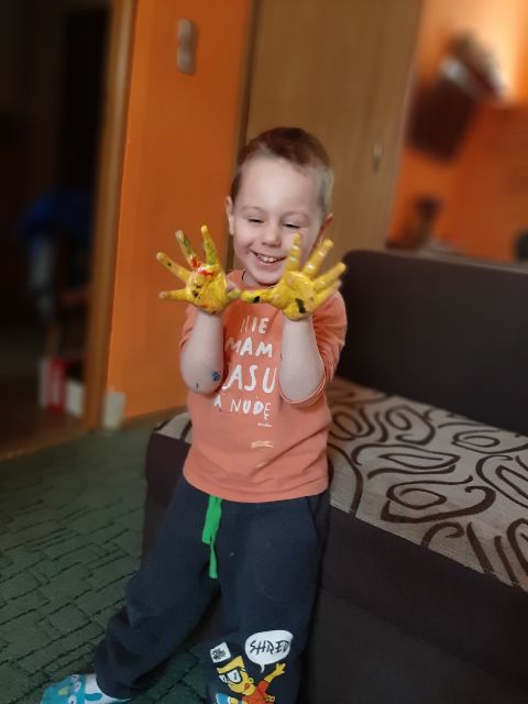 A tu już Jaś prezentuje się podczas klasycznego malowania farbami