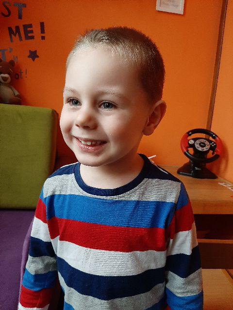 Radość Jasia po ukończonym ćwiczeniu