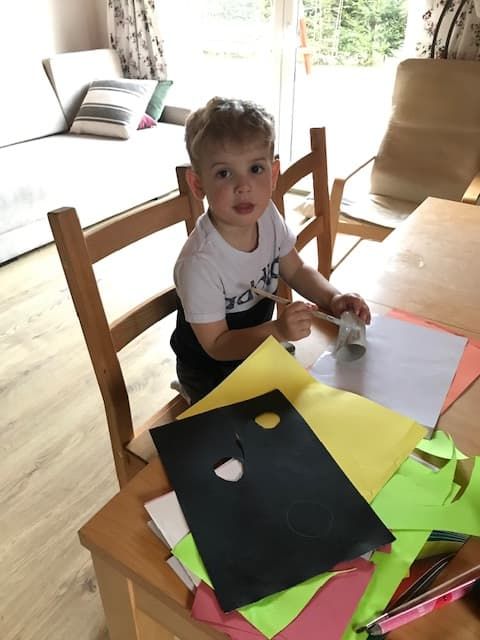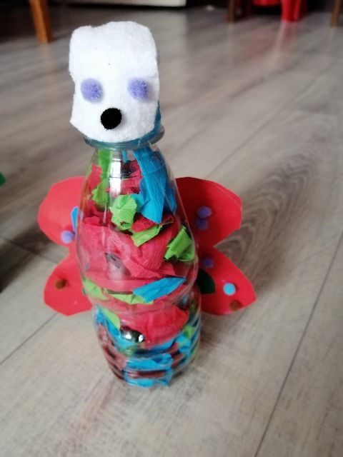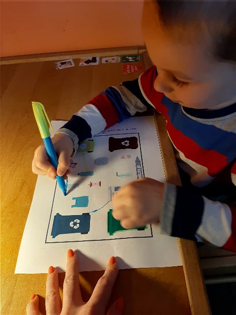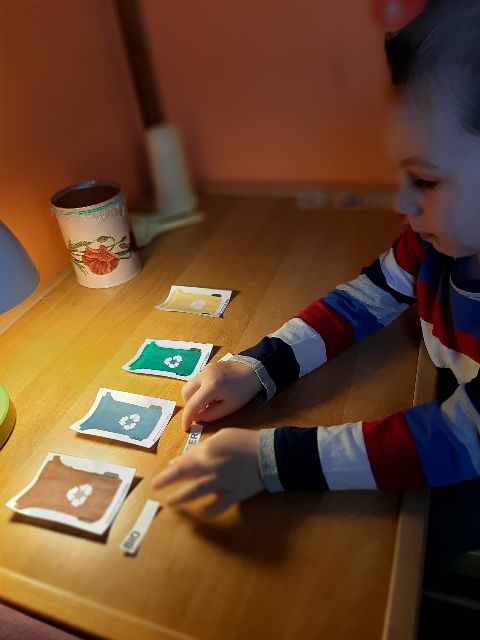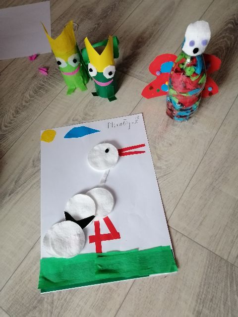 Recyklingowe działania plastyczne Jasia...Kto z Was wie, co powstanie?