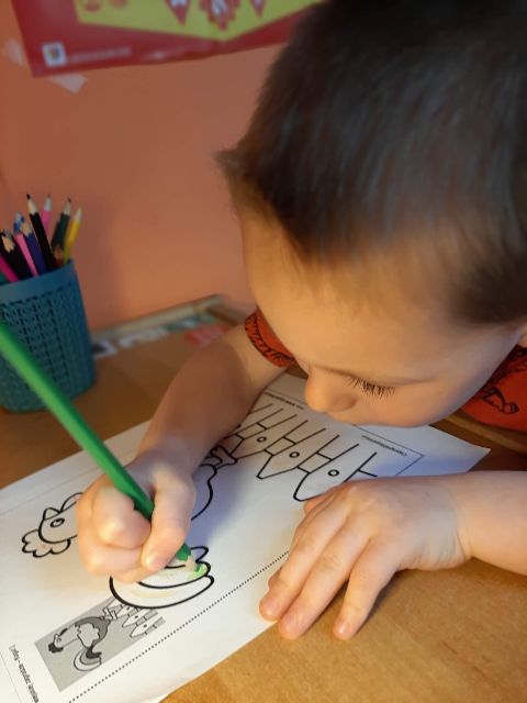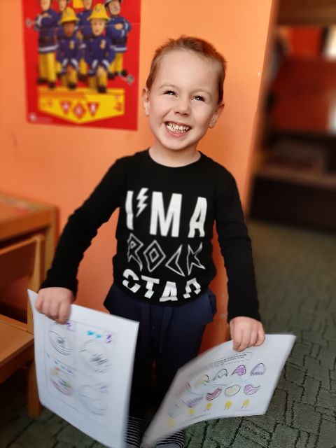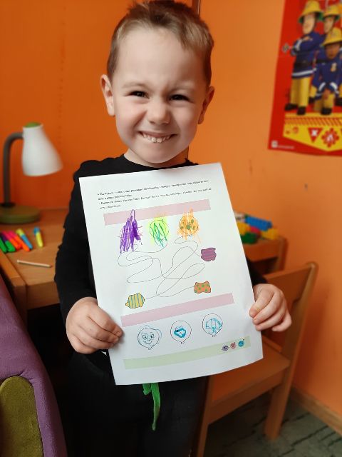 Mikołajek Ż. nie ominął żadnych zajęć, wszystkie zadania pięknie wykonane. Brawo!
