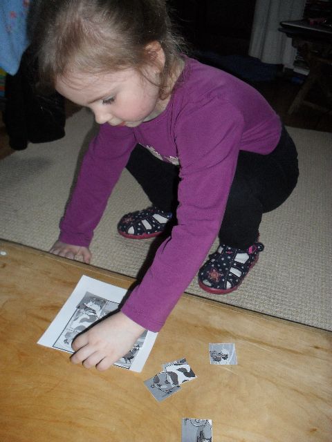 Lucynka świetnie sobie radzi z układaniem puzzli