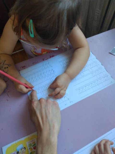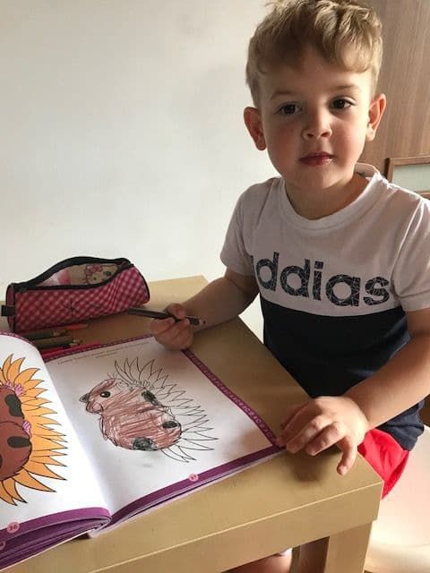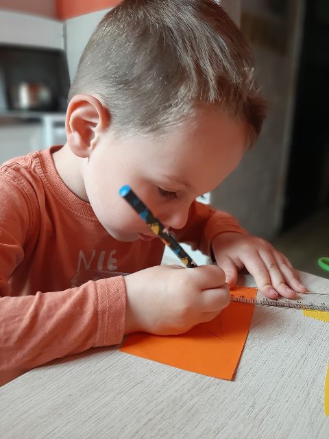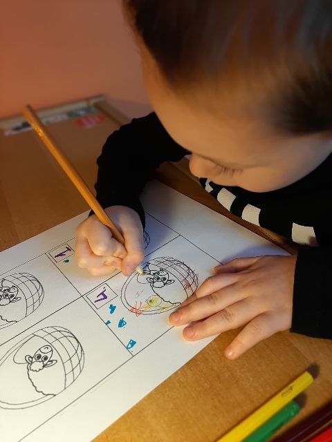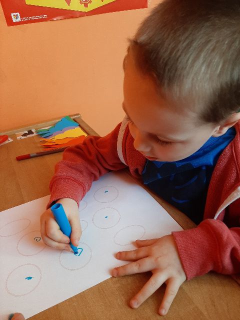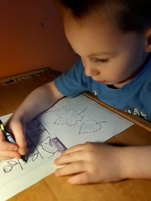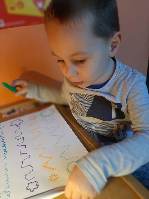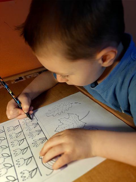 Jaś podczas wykonywania szlaczków