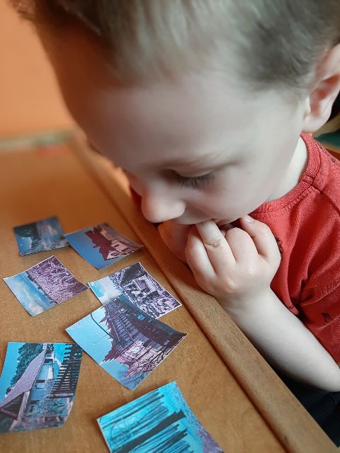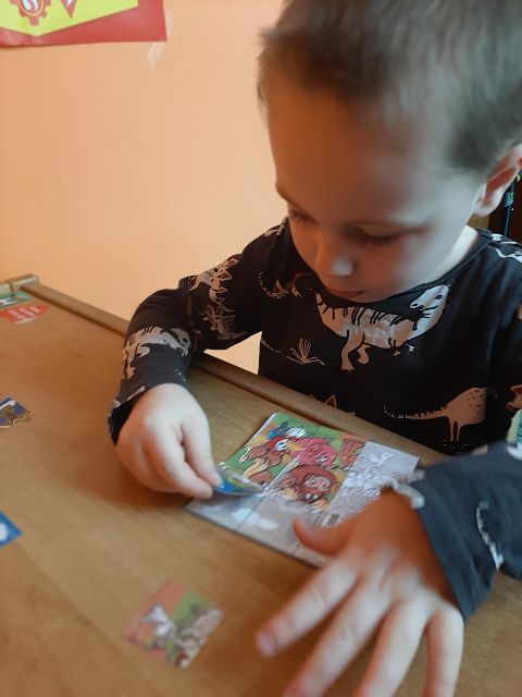 Jaś układa puzzle obrazkowe