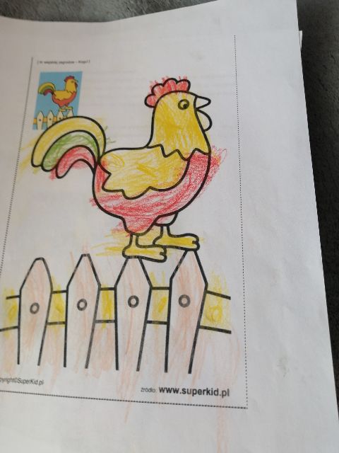 Jaś koloruje mieszkańca wiejskiego podwórka