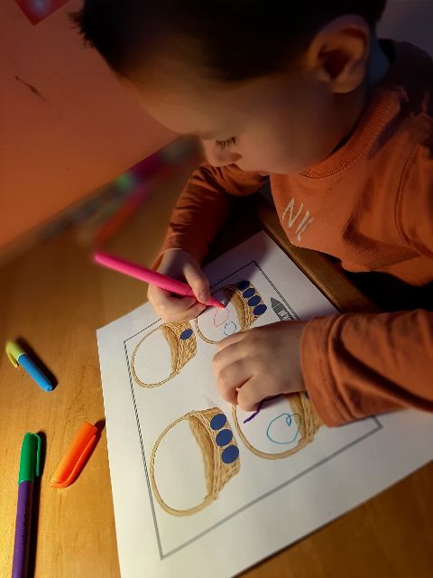 Jaś koloruje koszyczki