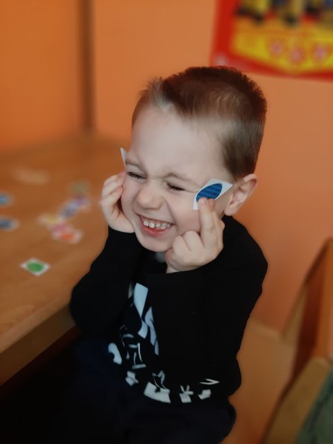 Jaś pokusił się o naśladowanie emocji dzieci z obrazków - jak myślicie w jakim nastroju jest Jaś na zdjęciu