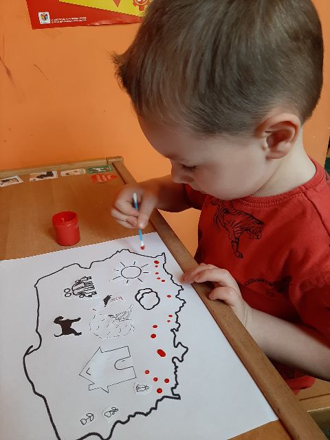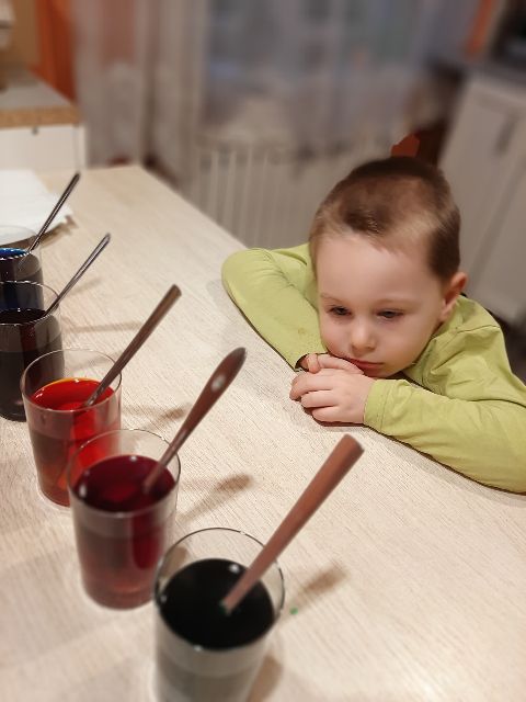 Jaś najpierw rozplanował kolory swojej pisanki