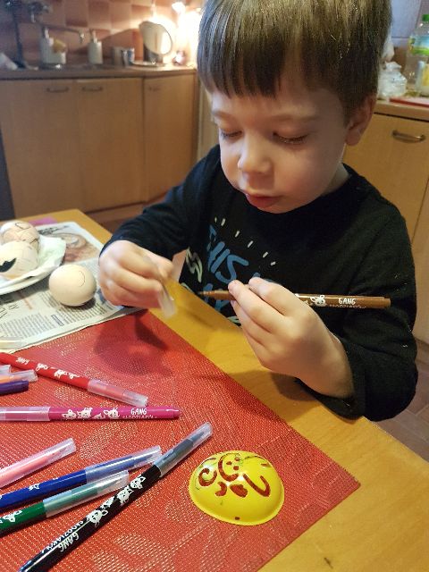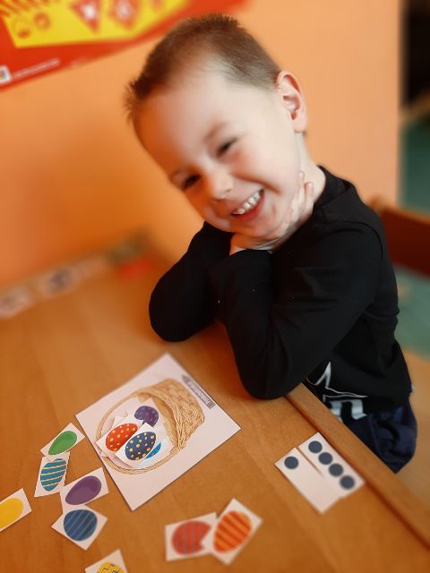 Jaś koloruje skorupki, żeby łatwiej było znaleźć pary