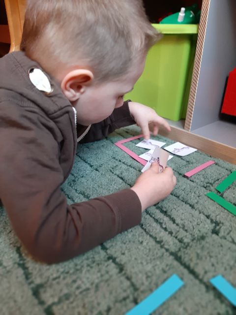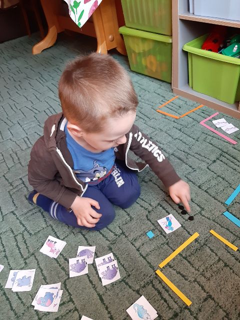Jaś klasyfikuje przedmioty na dywanie