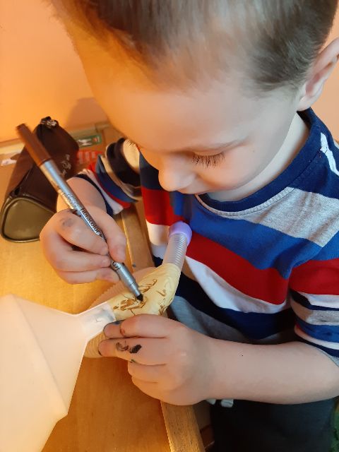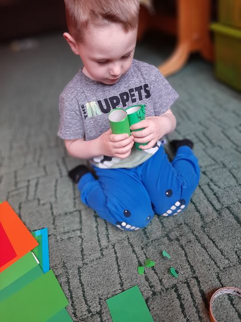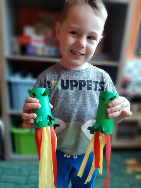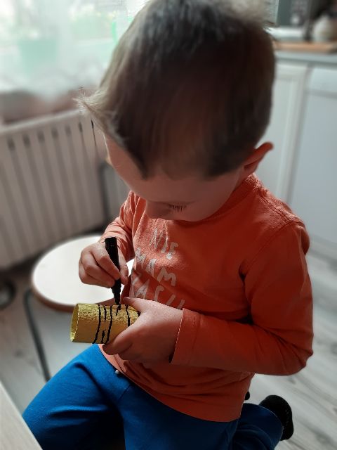 A co Jaś tworzy z rolki? Może to będzie tygrys ...