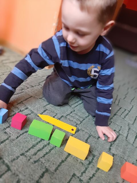 Jaś zna figury i kolory więc bez problemu wykona zadanie