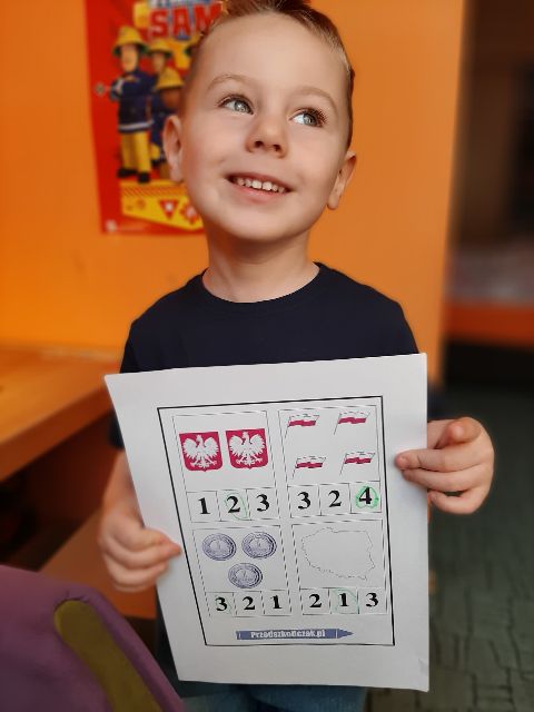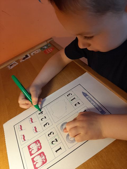 Jaś układa rytmy z symboli Polski