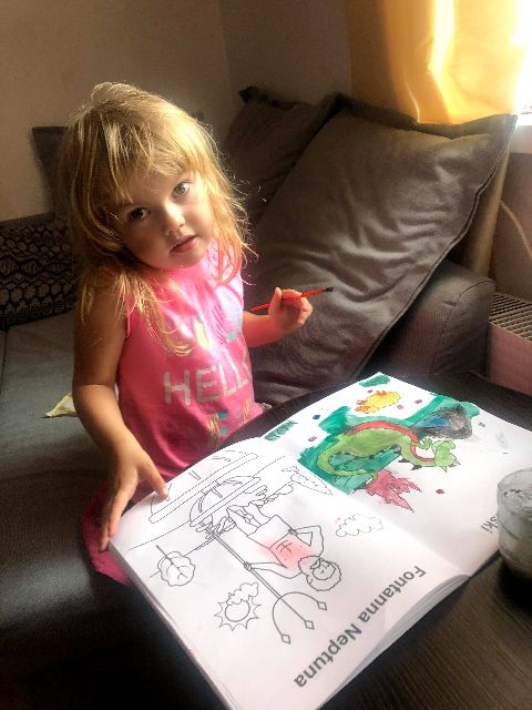 Zosia podczas akwarelowych kolorowań zabytków i symboli Polski