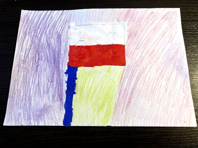 Potargane białe kawałki papieru posłużyły Jasiowi jako wypełnienie górnej części flagi