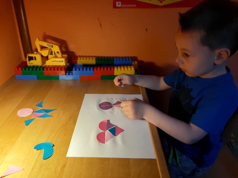 Jaś układa obrazek z części